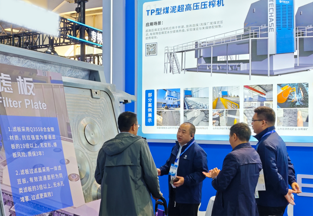 On the first day of the event, the venue was extremely popular. The Techase booth attracted visitors from all over the country to stop and inquire. With enthusiastic and professional explanations from the staff, the atmosphere on site was lively. While experiencing the charm of intelligent equipment technology, we will jointly explore new trends in industry development. As an innovator of intelligent equipment technology in the field of resource utilization, Techase has continued to work hard in the field of coal. More than 200 sets of slime/gasification slag resource-based system solutions have been introduced in the industry, which has been widely used in the world's top 500 enterprises such as Shanneng Group, middling coal Group, Huaneng Group, and so on, helping the coal industry improve quality and efficiency, and promote resource utilization.