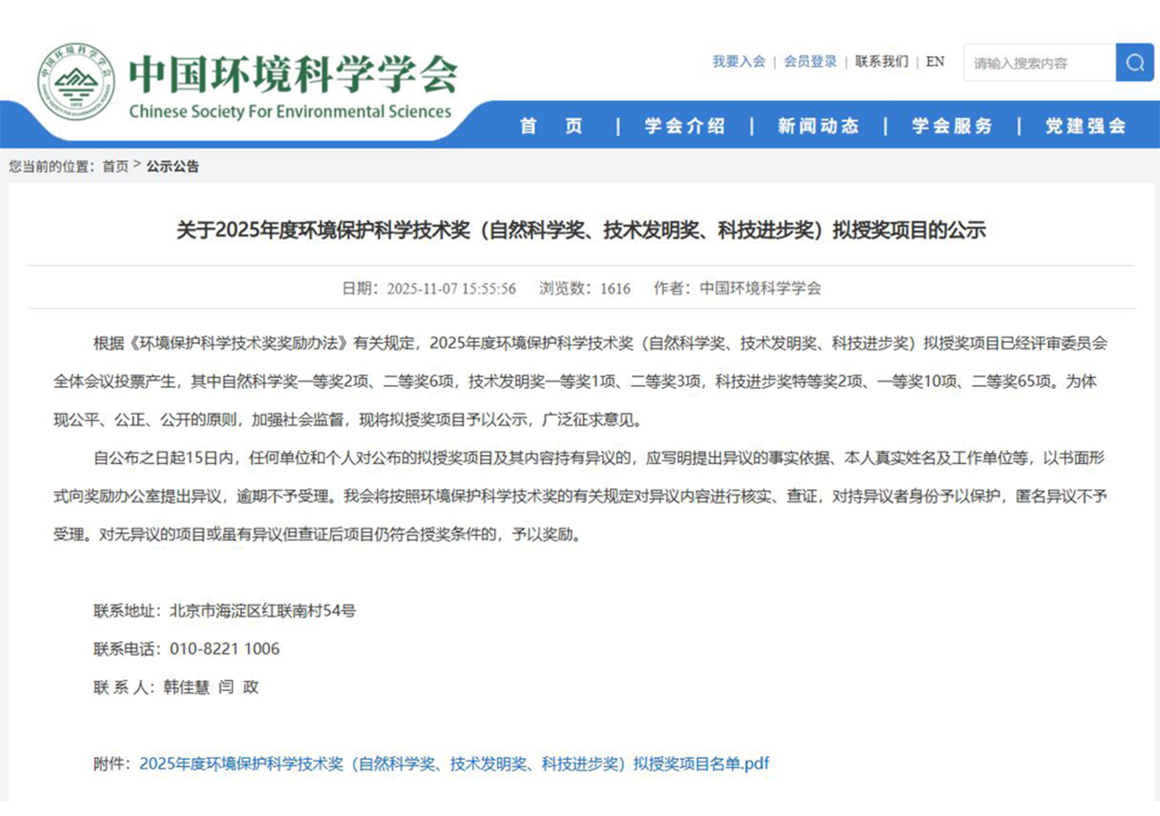 Recently, the Chinese Society of Environmental Sciences released a public announcement on the proposed award projects for the 2025 Environmental Protection Science and Technology Awards (Natural Science Award, Technology Invention Award, Science and Technology Progress Award). Dr. Song Yu and Engineer Zhang Kaixiang from Techase, together with Professor Su Lianghu's team from the Nanjing Institute of Environmental Science of the Ministry of Ecology and Environment and Professor Zhao Youcai's research group from Tongji University, jointly developed the project "Key Technologies and Applications for Active Control and Biochemical Degradation of Perishable and High Moisture Organic Waste and High Order Resource Conversion", which won the second prize of the Science and Technology Progress Award.