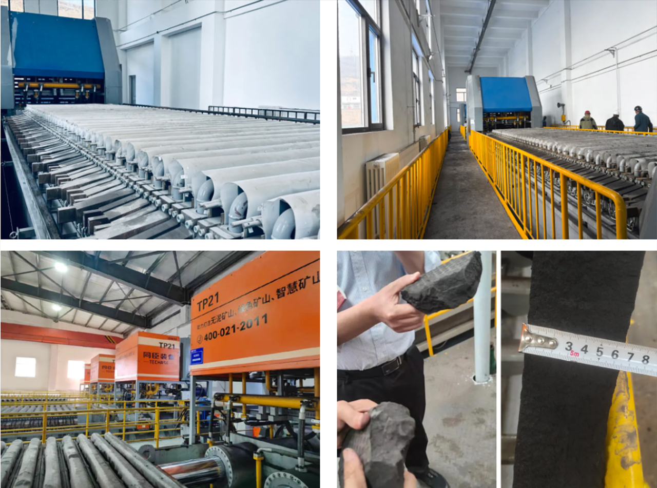 Techase is equipped with the self-developed ultra-high pressure slime press. Combined with the practical cases in the mining areas of Shanneng Group, China Coal Group, Huaneng Group, Lanhua Group and other places, it shows the strong adaptability and remarkable achievements of the equipment in different scenarios. The operation of the slime ultra-high pressure press not only reduces the slime moisture content to about 12%, but also realizes the automation of the whole process by means of the automatic adaptation of AI intelligent Internet of Things system, improving the production capacity and reducing the labor cost. In addition, Tongji, Taiyuan University of Technology and other universities were united to establish a "slime crushing center", which launched a 10MPa operating pressure to guide the industry, which is both light and safe. As well as the integrated high-strength panel and frame, it has a longer service life and is more durable. Mechanical pressing, without heat source, perfectly realizes the triple goals of "efficiency improvement, cost reduction and environmental protection".