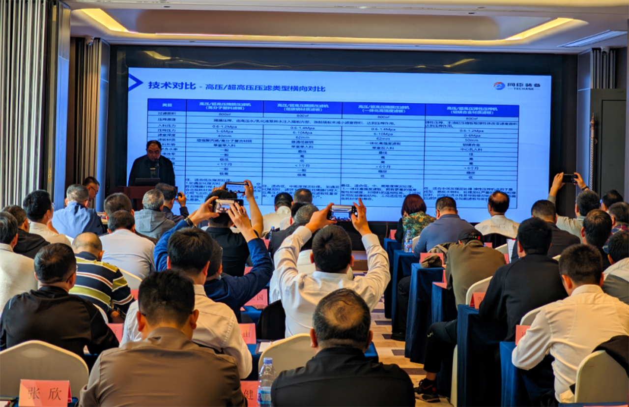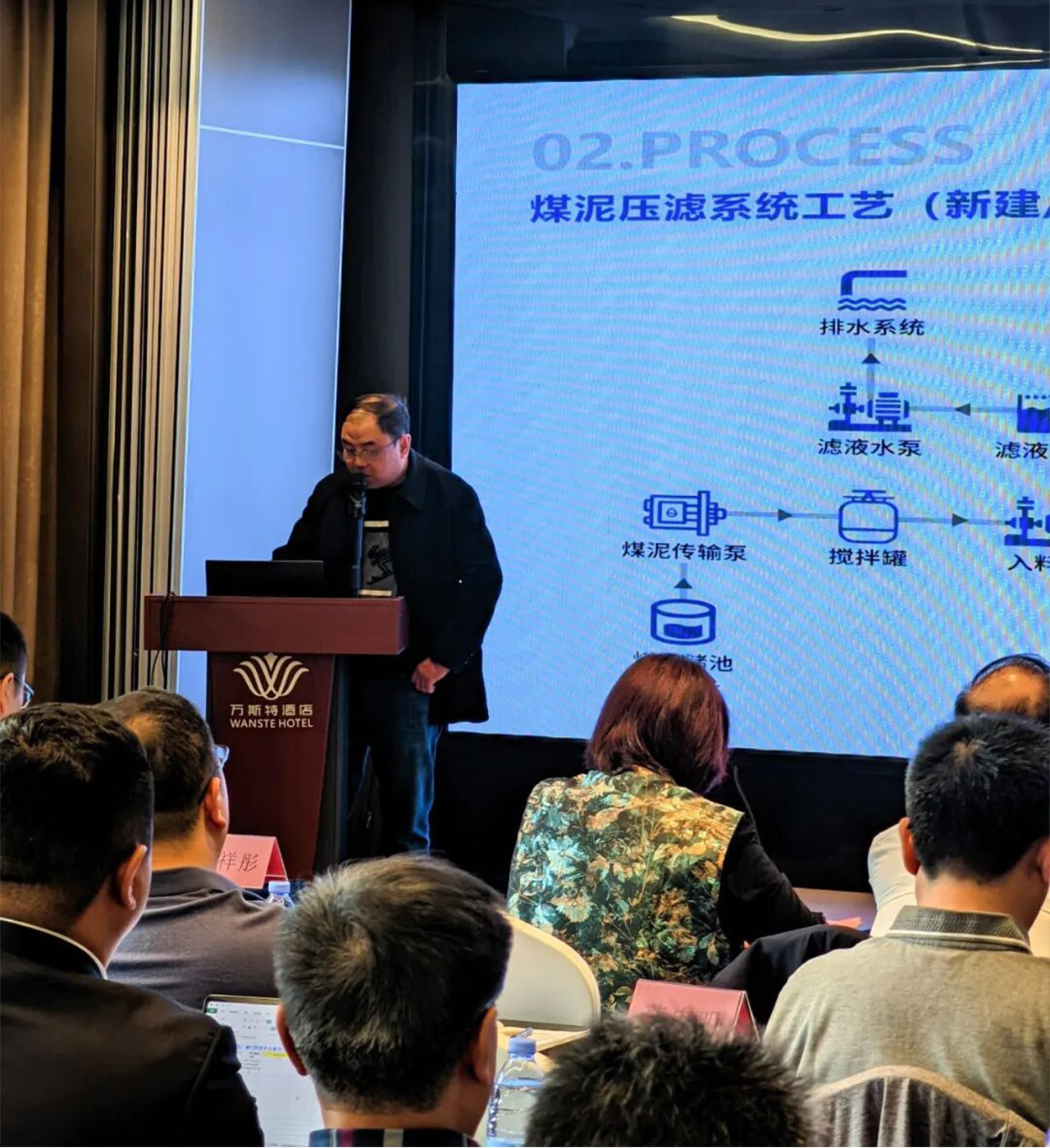 At the meeting, Dr. Song Yu, Director of Techase R&D, Deputy Director of Shanghai Sludge Treatment and Recycling High tech Equipment Engineering Technology Research Center, and Deputy Director of Shanghai Sludge Low Carbon and Recycling High tech Equipment Technology Innovation Center, shared the advanced technology entitled "TP Type Coal Slime Ultra High Pressure Press Treatment Solution". From the current situation of slime industry to the comparison of domestic application technologies, to the innovative advantages and project application of Techase slime ultra-high pressure press, wonderful technology sharing and cutting-edge practical experience were warmly concerned and discussed by the participants.