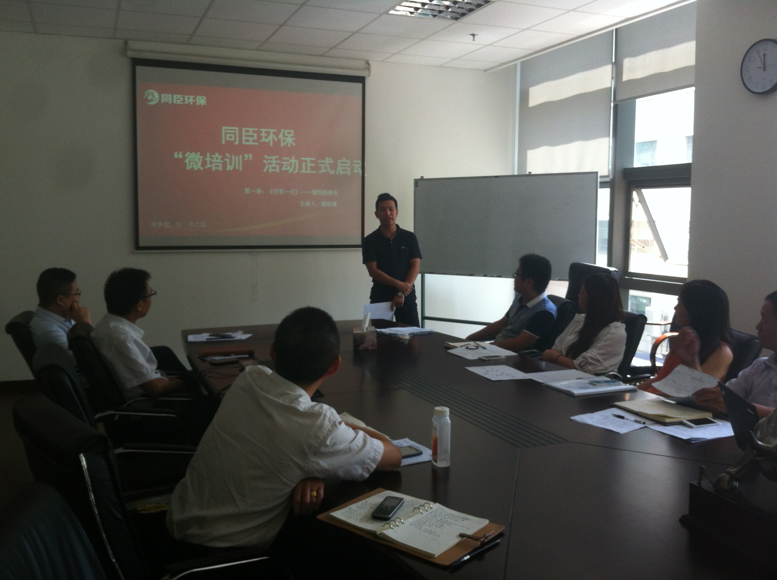 2014年9月15日,同臣环保“微培训”计划正式启动。此次微培训活动旨在以每位员工为核心,构建开放式“微环境”,向周围员工传播“微知识”和“微技能”从而提高员工的各方面的能力。