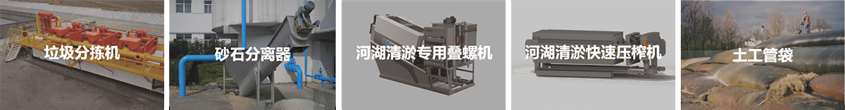水体中被挖出的淤泥输送至岸上后,陆续经过垃圾分拣设备、砂水分离设备的处理,淤泥经浓缩、调理后,可根据项目情况选择机械脱水固结或者土工管袋固结脱水方式。机械固结脱水是将调理后的污泥泵送至河湖清淤专用叠螺机或河湖清淤专用快速压榨机,将淤泥进行快速脱水固结脱水。土工管袋固结脱水是将调理后的淤泥注入到土工管袋中,经絮凝沉淀、沥水过滤后,体积在短时间内得到大幅度缩减。